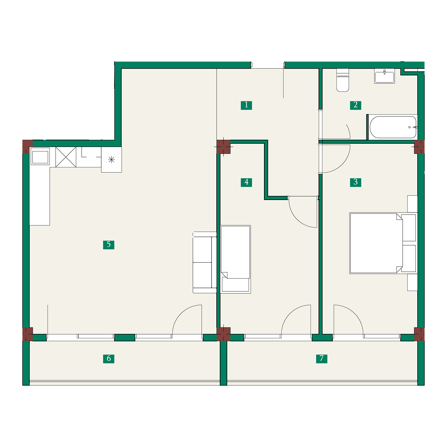 • 2Bathroom: 5.90m2